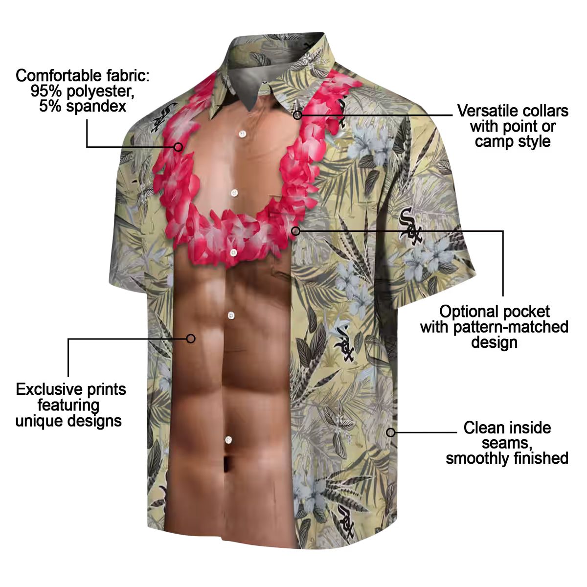 The Official Chicago White Sox Chest Illusion Hawaiian Shirt – Tropical MLB Button Up for Men is the perfect blend of bold sports fandom and tropical summer style. Featuring a sleek black base, this shirt showcases an eye catching chest illusion design that adds dimension and edge to your wardrobe. Crafted with premium lightweight fabric, it’s ideal for warm weather days, beach vacations, or casual game day outfits.