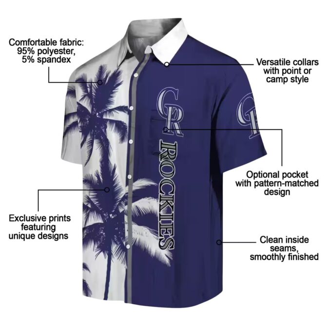 The Colorado Rockies Summer Hawaiian Shirt – Blue & White Tropical Palm Trees MLB Fan Gear is the perfect blend of tropical flair and MLB team spirit. Featuring a vibrant blue and white color scheme, this Hawaiian shirt is adorned with stunning palm tree patterns that evoke the carefree vibes of summer and beach vacations. The combination of bright colors and tropical imagery makes it ideal for fans who want to show off their Colorado Rockies pride in a stylish and relaxed way.