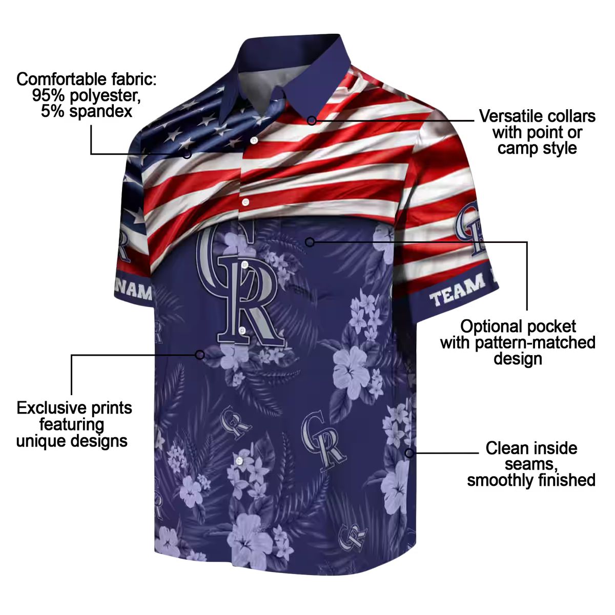 The Custom Colorado Rockies US Flag Hawaiian Shirt – Hibiscus Blue Beach Shirt for MLB Fans is the perfect blend of tropical style and MLB pride. Featuring a stunning hibiscus blue design, this Hawaiian shirt is adorned with vibrant US flag accents, making it a standout piece for any Colorado Rockies fan. Whether you’re headed to a summer barbecue, a beach day, or just relaxing in style, this shirt brings a refreshing and patriotic flair to your wardrobe. Made with lightweight, breathable fabric, it’s ideal for warm-weather occasions.