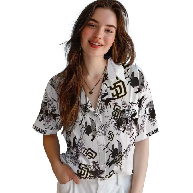 The Custom Padres Tropical Hawaiian Shirt for Summer – Botanical Style brings a refreshing twist to your summer wardrobe. Featuring a crisp brown and white palette, this tropical-inspired shirt blends classic island vibes with your Padres pride. The botanical theme includes subtle palm leaves and floral accents that make it perfect for beach outings, ballgames, or backyard BBQs.