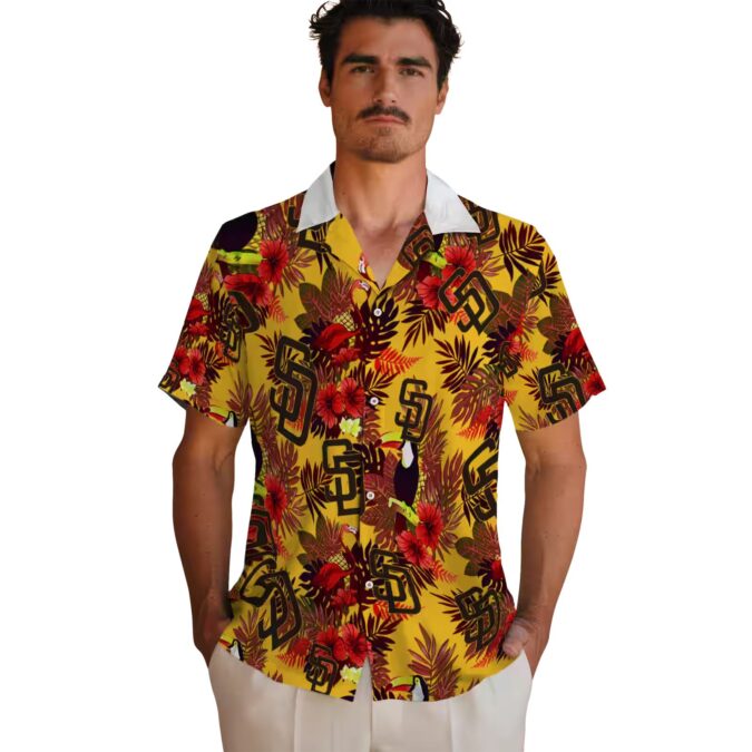The Floral Toucan San Diego Padres Hawaiian Shirt – MLB Fan Gift for Beach & Game Day brings a bold fusion of tropical flair and team spirit to your summer wardrobe. Designed with vivid brown and red hues, this shirt features eye-catching toucan and floral prints that perfectly complement the Padres’ iconic identity. Whether you’re hitting the beach, attending a game at Petco Park, or enjoying a backyard BBQ, this shirt delivers breathable comfort and standout style.