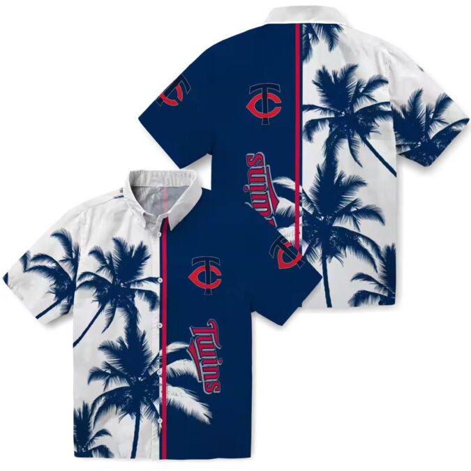 The Men’s Minnesota Twins Hawaiian Shirt – Navy White Palm Trees MLB Fan Shirt for Beach & Vacation is the perfect addition to your summer wardrobe. Featuring a vibrant tropical palm tree design, this shirt blends a classic navy and white color scheme with the laid-back charm of Hawaii. Ideal for MLB fans, this shirt brings together the excitement of the Minnesota Twins with a fresh, breezy style.