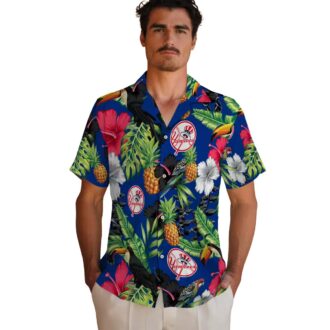 The Men’s Yankees Short Sleeve Hawaiian Shirt – Tropical Navy Green Toucan Design for Summer brings summer to life with a bold mix of tropical charm and baseball pride. Featuring vibrant toucans, blooming hibiscus flowers, and juicy pineapples, all set against a rich navy green background, this shirt is a true standout for beach days, backyard BBQs, or game day celebrations. The lightweight, breathable fabric keeps you cool, while the relaxed fit ensures all day comfort.