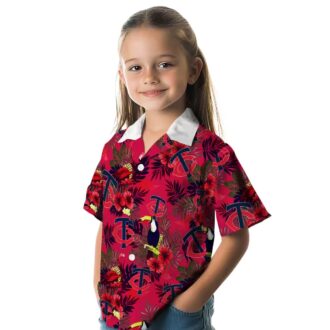 The MLB Minnesota Twins Floral Toucan Hawaiian Shirt – Navy Red Tropical Summer Shirt for Fans is a perfect blend of vibrant tropical patterns and MLB fan spirit. Featuring a stunning floral toucan design in bold navy and red colors, this shirt is ideal for the warm summer months.