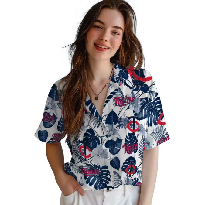 The Minnesota Twins Navy White Beach Party Shirt – Tropical Plants Hawaiian Shirt for MLB Fans is the perfect addition to your summer wardrobe. Featuring a vibrant tropical plant print, this shirt blends navy and white colors to create a stylish yet relaxed look.
