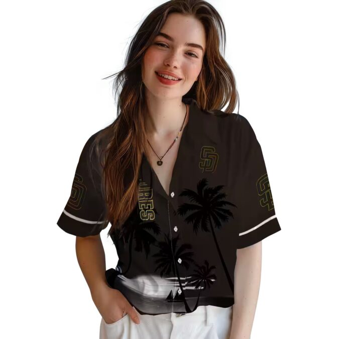 The MLB Padres Fan Hawaiian Shirt – Brown Black Sunset Tropical Game Day Wear brings the spirit of California’s coastline straight to your wardrobe. Featuring a warm beach sunset backdrop blended with rich brown and black tones, this tropical shirt is designed to turn heads at every Padres game day or summer outing. The breathable fabric and relaxed fit make it ideal for beach trips, backyard BBQs, or cheering from Petco Park.