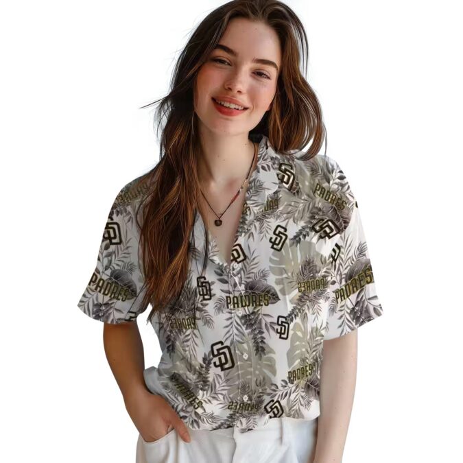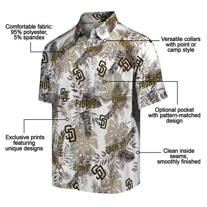 The San Diego Padres Tropical Leaves White Hawaiian Shirt – MLB Fan Apparel for Vacation is the perfect addition to any Padres fan’s wardrobe. Featuring a bold tropical leaf pattern on a crisp white backdrop, this shirt offers a stylish and comfortable way to showcase your team spirit. Whether you’re heading to a summer BBQ, game day at Petco Park, or a vacation by the beach, this shirt provides the ideal combination of relaxation and team pride. The vibrant tropical leaves design brings a touch of the California coastline to your outfit, making it perfect for any warm-weather occasion.