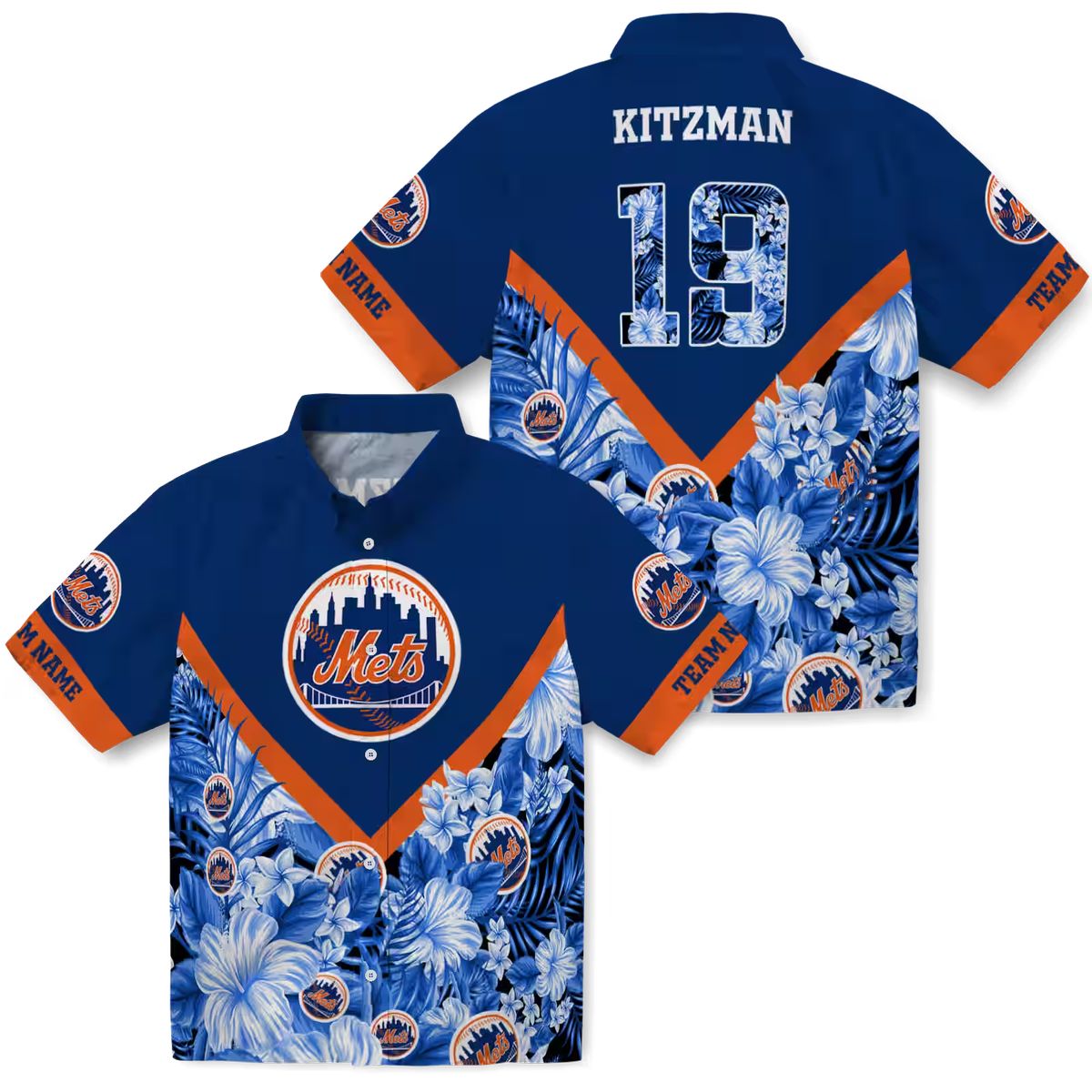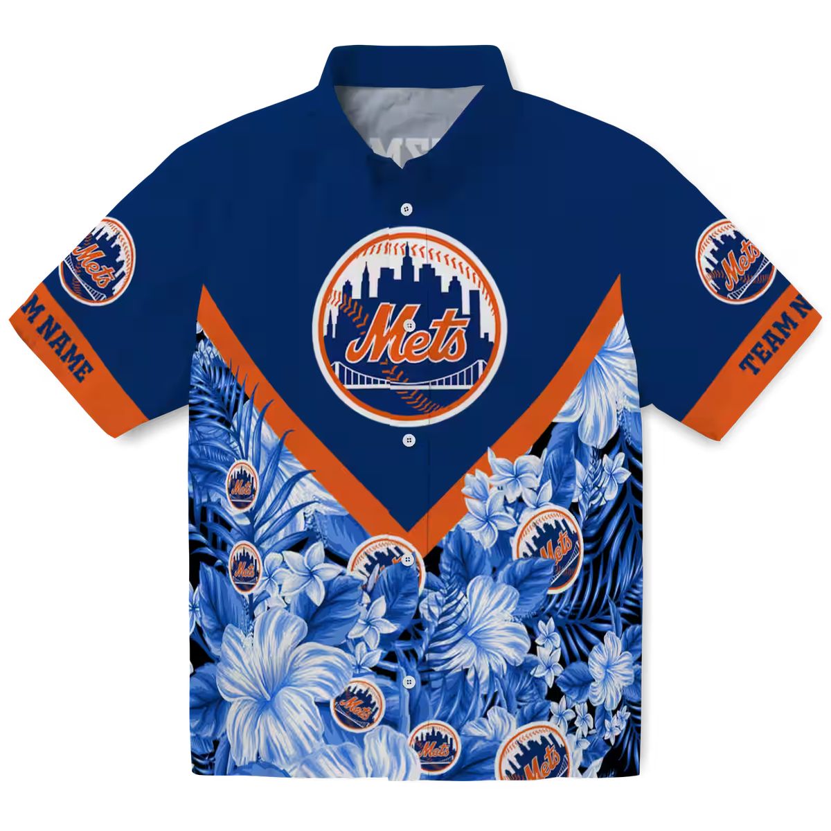 The Trendy New York Mets Floral Blue Hawaiian Shirt – Custom MLB Team Shirt for Fans combines vibrant tropical florals with a stylish chevron pattern, making it the perfect addition to your summer wardrobe. Featuring the iconic New York Mets team colors of blue and orange, this shirt showcases a bold design that blends MLB spirit with a laid-back Hawaiian style.