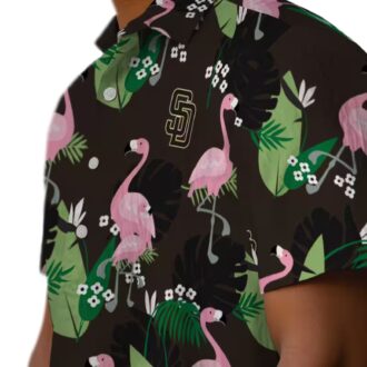 Ready to bring the beach vibes to your next game day? This Tropical San Diego Padres Brown Hawaiian Shirt blends your love for baseball with bold, laid back style. Designed just for women, it features a fun mix of flamingos and tropical leaves in classic Padres brown, perfect for sunny tailgates, summer BBQs, or just repping your team in a totally relaxed way.